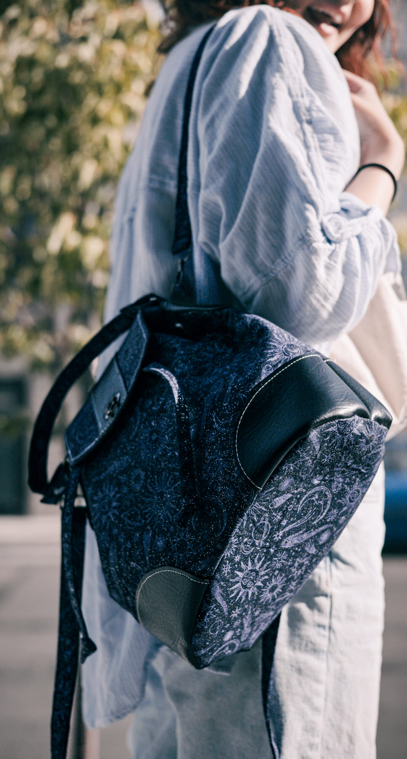 Meet the Astral Eclipse Convertible Bucket Bag — a magical, multi-functional statement piece designed for adventurers who refuse to choose just one way to carry their essentials. Featuring a deep purple and black celestial pattern dusted with subtle silver sparkles, this bag feels like carrying a piece of the night sky wherever you roam.